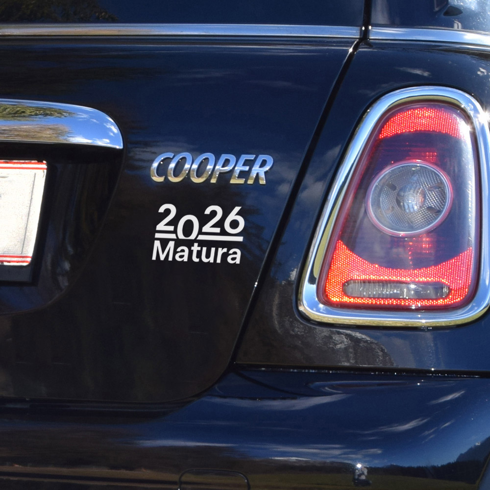Autosticker "2026" mit oder ohne Wunschtext, 1-färbig, konturgeschnitten.
