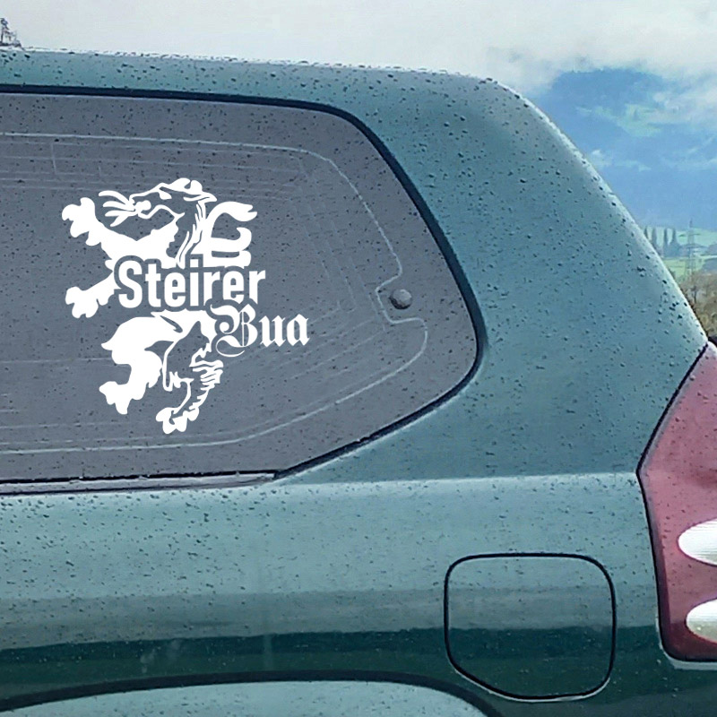 Ein vielseitig einsetzbarer, 1-färbiger, konturgeschnittener Premium Autoaufkleber "Steirer Bua", der deinem Fahrzeug deinen persönlichen Stil verleiht. Der Aufkleber wird auf Übertragsfolie geliefert. Jeder Bestellung liegt ein Rakel für die Anbringung bei.