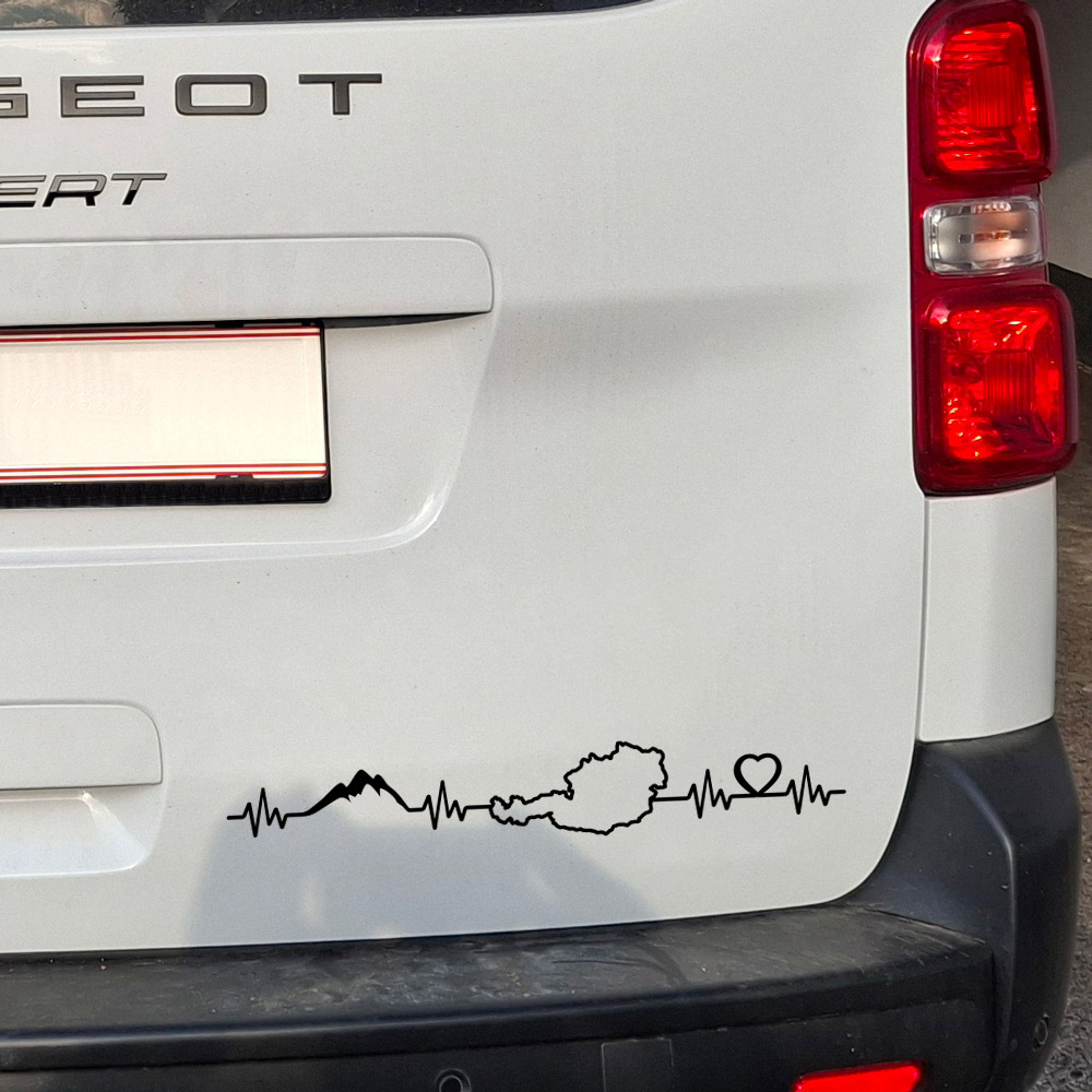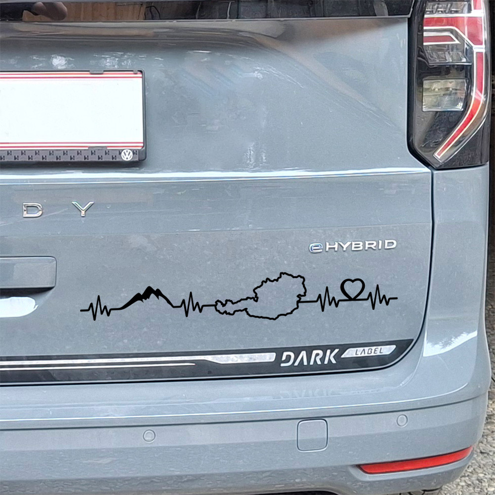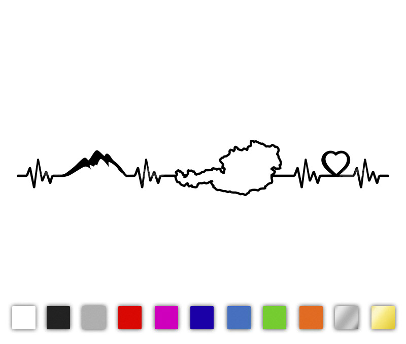 Material: gegossene PVC Folie für KFZ in Profiqualität hochglänzend. Motiv "Herzkurve - Österreich Landkarte - Herz" konturgeschnitten in vielen Farben und Größen.