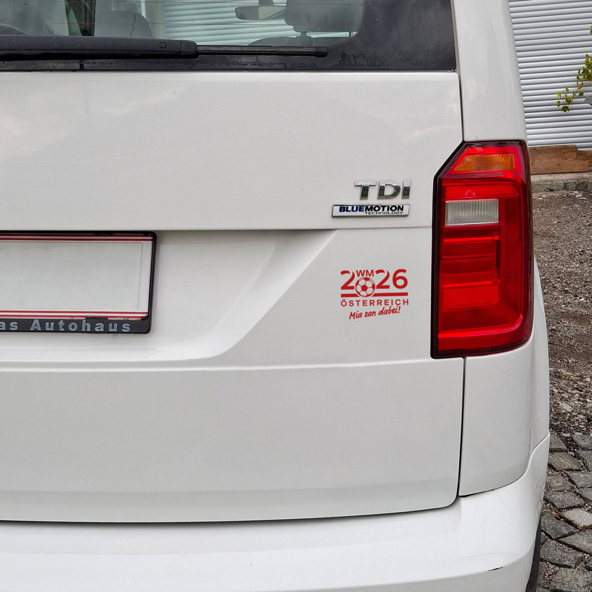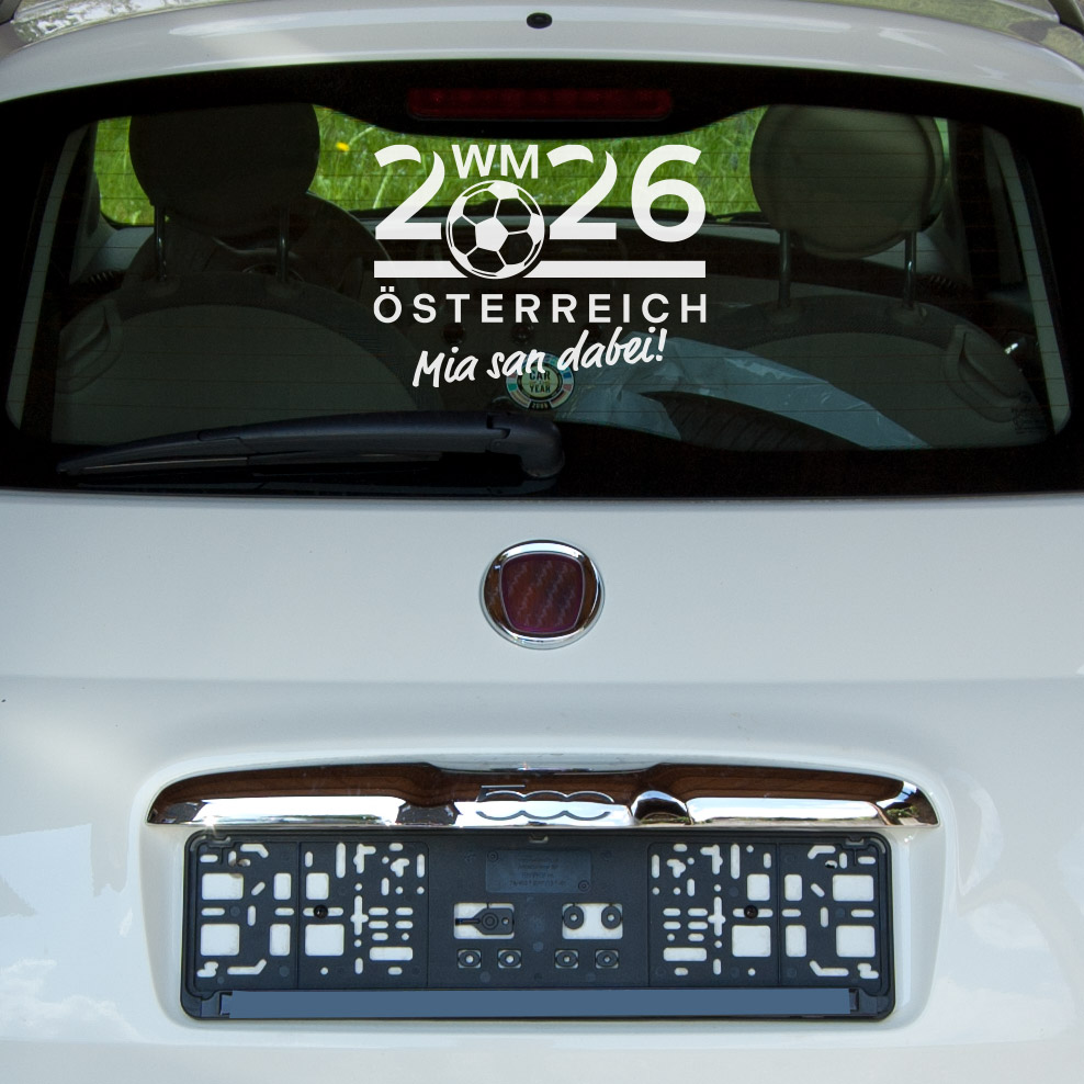 Material: gegossene PVC Folie für KFZ in Profiqualität hochglänzend. Motiv "Fußball WM 2026 Österreich" in verschiedenen Farben und Größen individuell konfigurierbar.